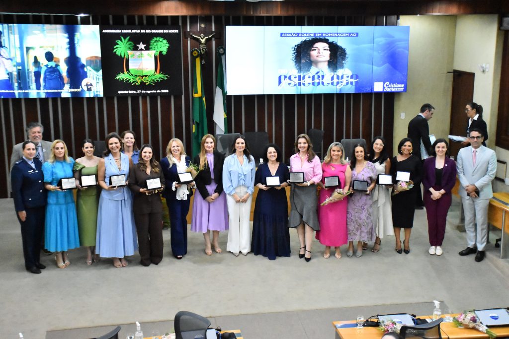 Na solenidade, psicólogas que têm atuado de maneira destacada no Rio Grande do Norte foram homenageadas com placas pela Assembleia Legislativa. As profissionais atuam em diferentes frentes da psicologia, desde o cuidado com crianças, adolescentes, casais e famílias, até o acompanhamento de pacientes com câncer, pessoas em luto, mulheres vítimas de violência e pessoas em processo de reprodução assistida.