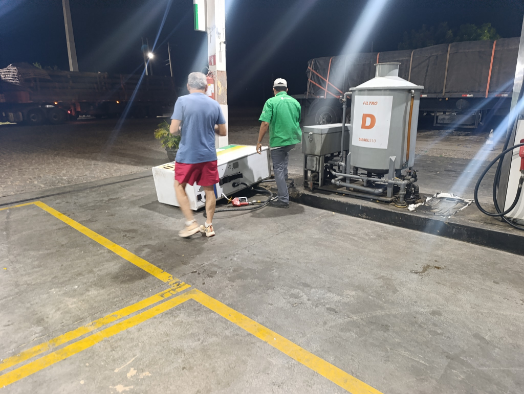 Duas viaturas foram deslocadas para a ocorrência e chegando ao local, algumas bombas de combustíveis estavam no chão.