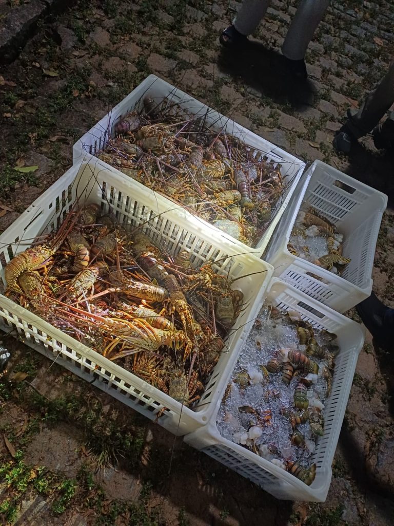 A inspeção da carga revelou que, embora a quantidade fosse de 80 quilos, o pescado estava em desacordo com a Portaria MPA/MMA 31/2025. A equipe constatou a presença de lagostas inteiras e em cauda em proporção muito acima do limite permitido pela legislação, que estabelece uma relação de até 30% de lagostas abatidas em relação a lagostas vivas. Além disso, nenhuma documentação fiscal que comprovasse a procedência da carga foi apresentada, violando a Instrução Normativa MAPA/MPA nº 4/2014, que exige o registro em nota fiscal do número de inscrição no Registro Geral da Atividade Pesqueira (RGP) e o registro junto aos Serviços de Inspeção.